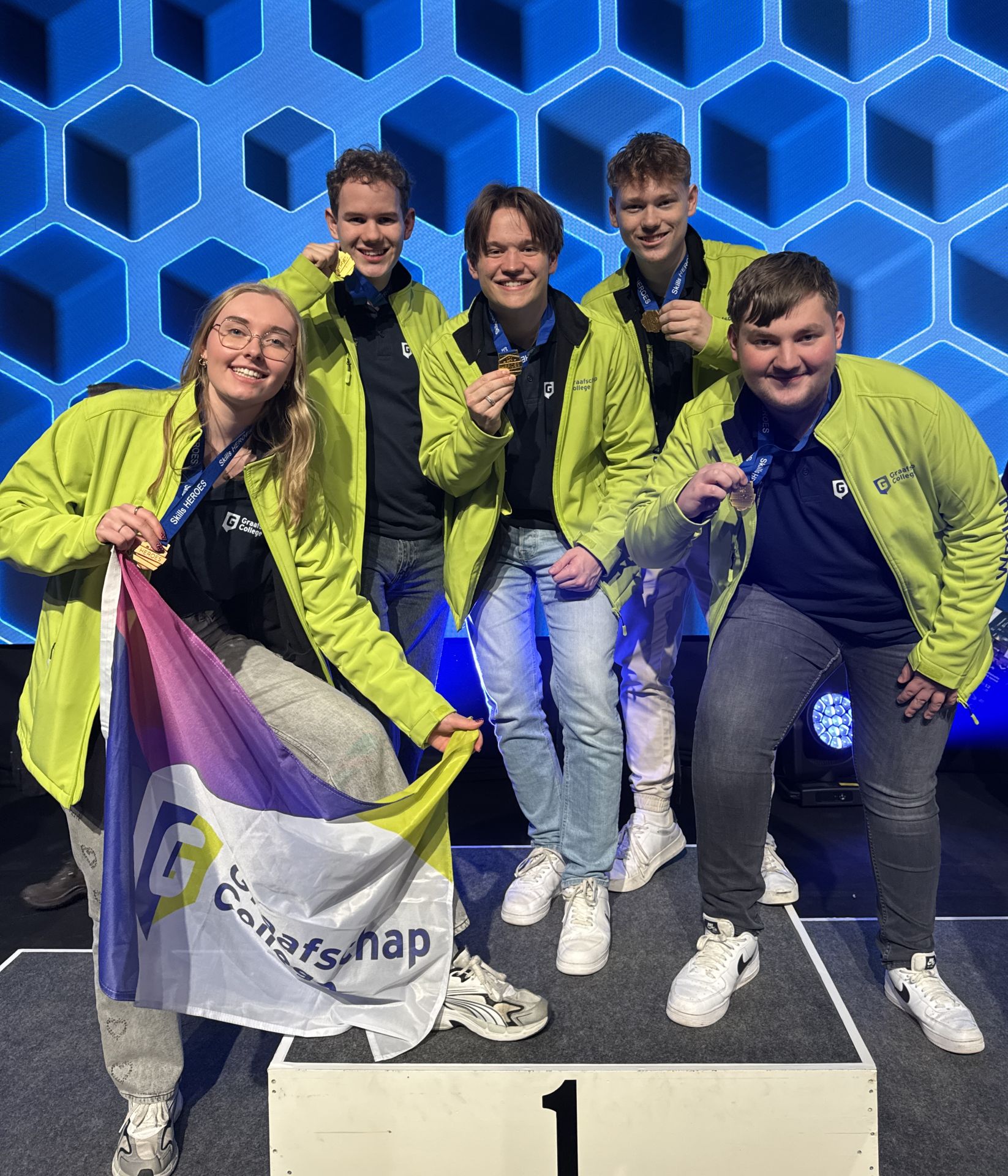 Binnen het vakgebied ICT en Media behaalde het Graafschap College maar liefst drie gouden medailles. Wesley Kock en Kyle Scobie wonnen goud in de categorie Cyber Security, Stan Nijkamp won goud in de categorie ICT beheer en Finn Vreeman ontving een gouden medaille in de categorie Software Developer. Een uitzonderlijke prestatie.